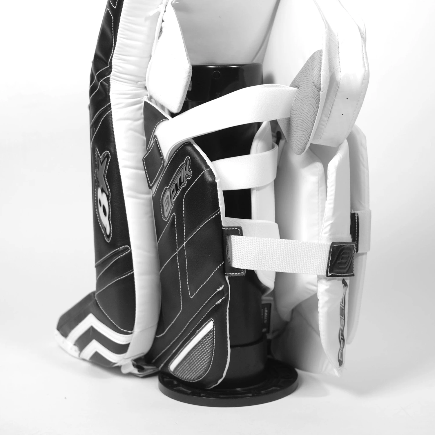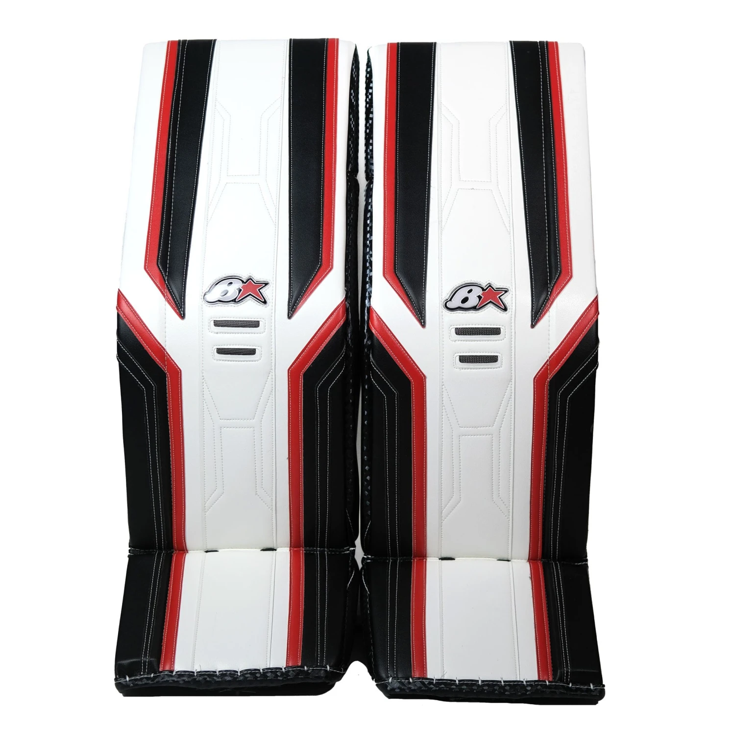 The Optik 3 Senior leg pads are available in 31+1 to 38+1 sizes at stock, in the following colourways: Black/White, Black/White/Silver, and Wite/Red/Black. Brian’s offers a customization option with the Optik 3 pads, which allows you to decide your own colours, angles, sizes, etc. in the pads.