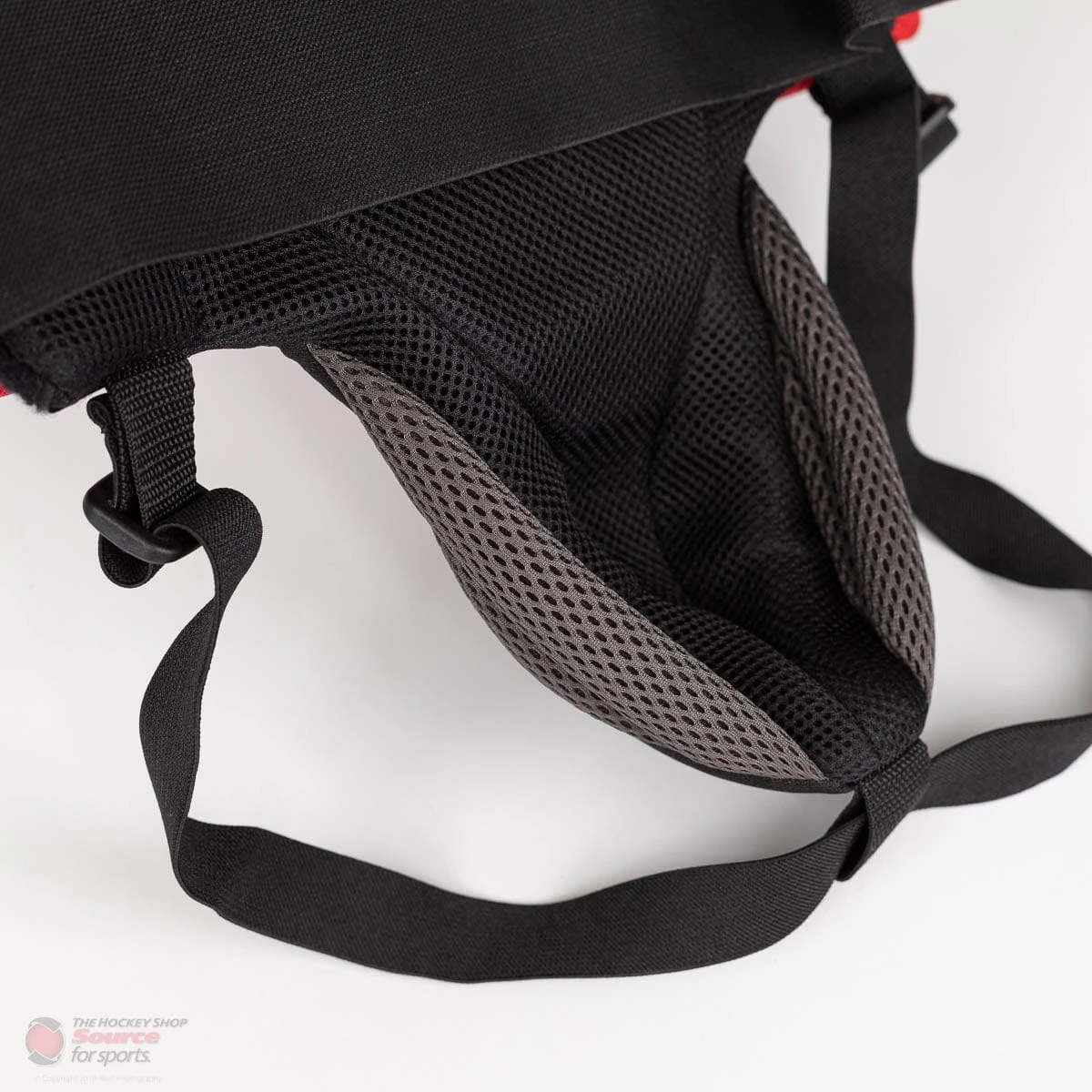 The Junior sized CCM G1.9 Goal Jock is adjustable, and fits between a 22” and 26” waist.