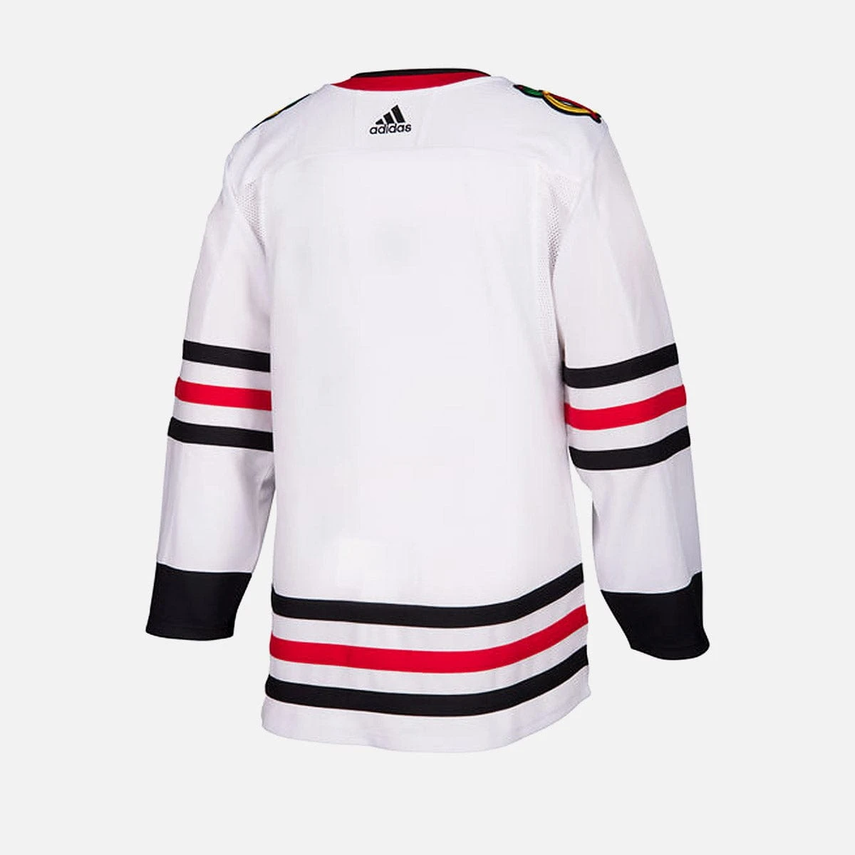 The Chicago Blackhawks Away Adidas Authentic Senior Jersey is an officially licensed jersey of the NHL. The new and improved authentic team jerseys show your devotion to your favourite team, with the addition of the original Adidas climalite technology to maximize mobility and enhance performance. The new touch of the sewn, platinum NHL Shield under the front collar gives these jerseys its finishing touch on becoming the new look of the NHL.