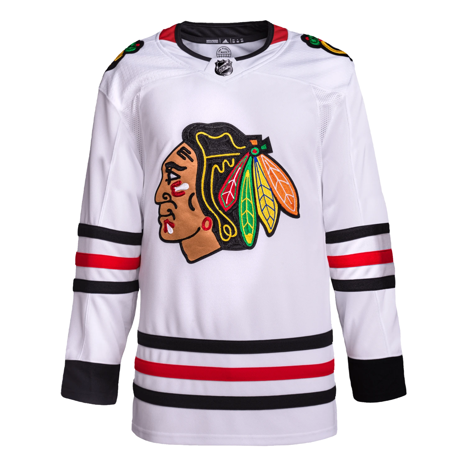 Stroll around the Windy City with your Chicago Blackhawks pride in full view in this adidas authentic away game jersey. AEROREADY keeps you cool as you pick up supplies for tonight’s tailgate party. A mesh underarm insert adds extra breathability when the hot sauce on the wings kicks in. This product is made with Primegreen, a series of high-performance recycled materials.