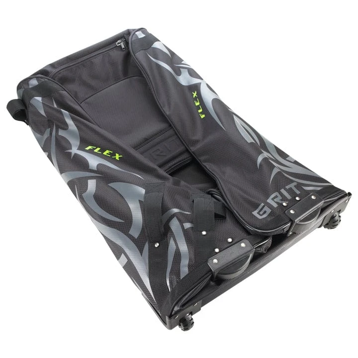 Developed over a period of almost 10 years the FLEX is our sixth generation of Hockey Tower bags. Improvements made to this bag include: a padded shoulder strap which allows the bag to be carried comfortably, a composite frame which reduces the bag weight by almost four pounds and allows flexibility, better ventilation, improved shelving system for quicker air drying and high-vis lining. The bag also folds up instantly for storing beneath the bench during games. Available in – 33″ and 36 inch”.