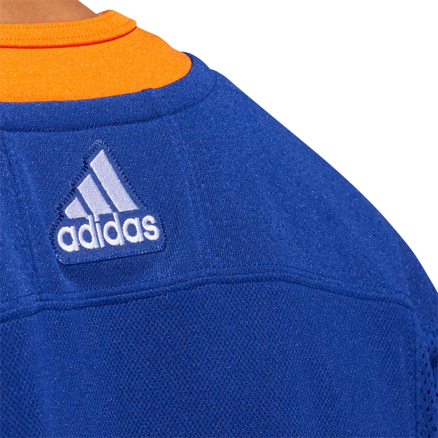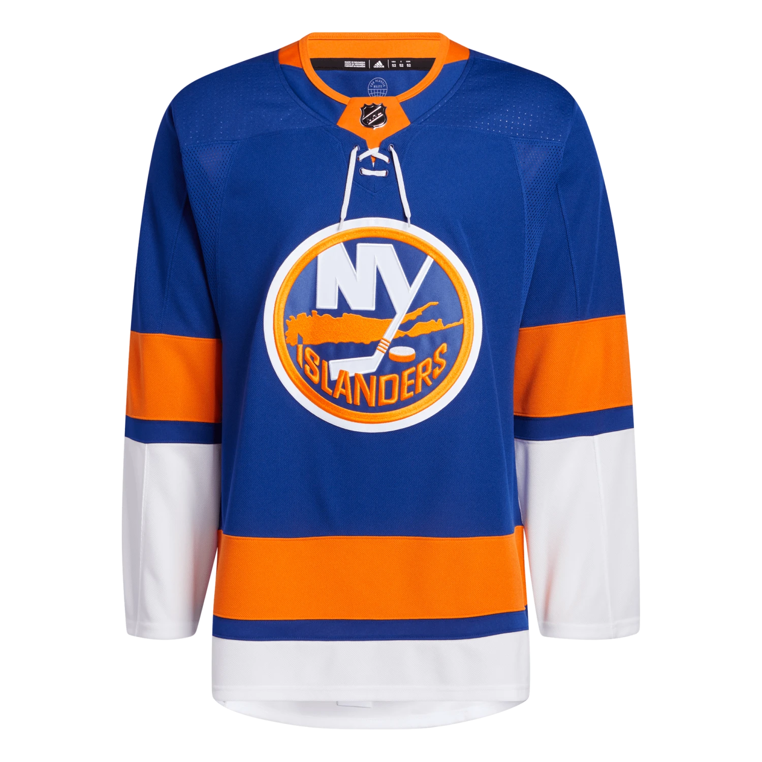 Pull on this adidas New York Islanders authentic home jersey, and get the gang together for game night in your fan cave. AEROREADY keeps you cool and dry as you wait for the puck to drop at center ice. The big crest out front, shoulder patches and a fight strap with a snap closure keep the look legit. This product is made with Primegreen, a series of high-performance recycled materials.