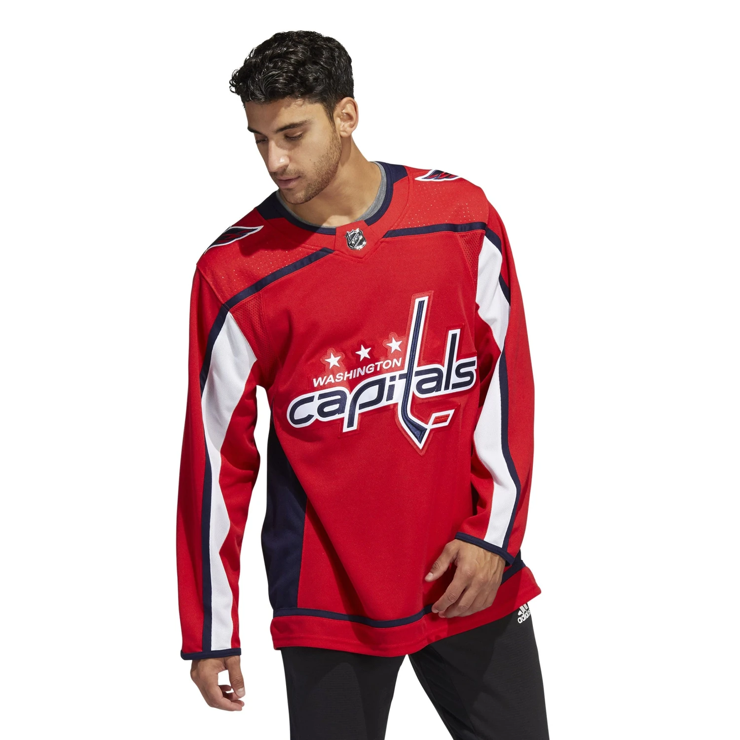 Get all your good luck gear together, pull on this Washington Capitals Home Adidas PrimeGreen Senior Jersey and cheer on your favorite team. AEROREADY keeps you cool as the Capitals’ descend on the net. A mesh underarm insert adds breathability as you jump to your feet when the goal horn sounds. This product is made with Primegreen, a series of high-performance recycled materials.
